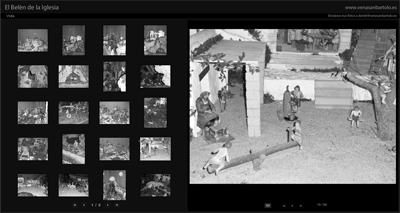 Sobre 1958, el cura, D. Casimiro, ya ponía un pequeño Belén (2 x 2,5m.) al lado de la sacristía. Eran solo el Nacimiento y los Reyes, pero con figuras hechas de madera por el mismo. Después, con D. Jose Mª, en los años 60 se traslado a lado de la torre, se amplió un poco y empezaron a montarlo las catequistas y colaboradoras de la parroquia. A principios de los 70, se compraron, con la colaboración de todo el pueblo, los Reyes Magos y el Nacimiento que actualmente seguimos poniendo. A partir de 1980 o 1981, fue cuando mis padres (Paco e Isabel) empezaron a implicarse un poco más y a tomar un poco la iniciativa de montar el Belén. Se empezaron a comprar algunas figuras ya que hasta entonces era “caseras” hechas de espuma.
